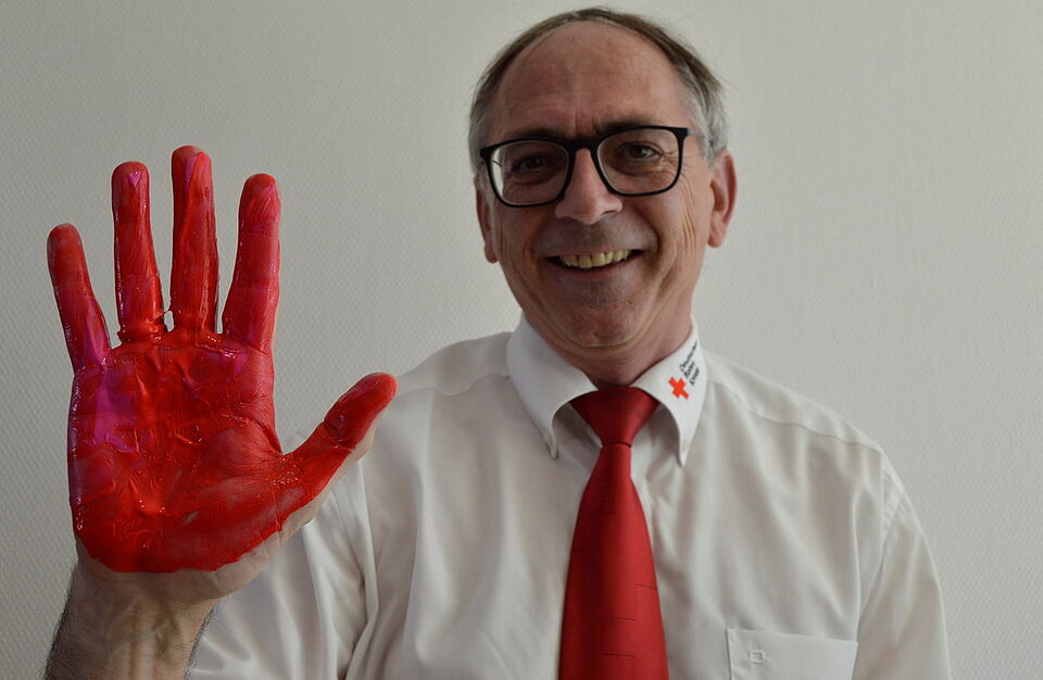 Weilerswist - Damit hatten die Weilerswister Bürgermeisterin und der Kreisvorsitzende des DRK nicht gerechnet: Pink malten die Kinder eine Hand von Anna-Katharina Horst an, die von Karl Werner Zimmermann in Rot. Die beiden durften als Erste ihren Händeabdruck auf dem großen Erinnerungsplakat hinterlassen. Fröhlich lachend und unter großem Beifall der Gäste taten sie das dann auch.