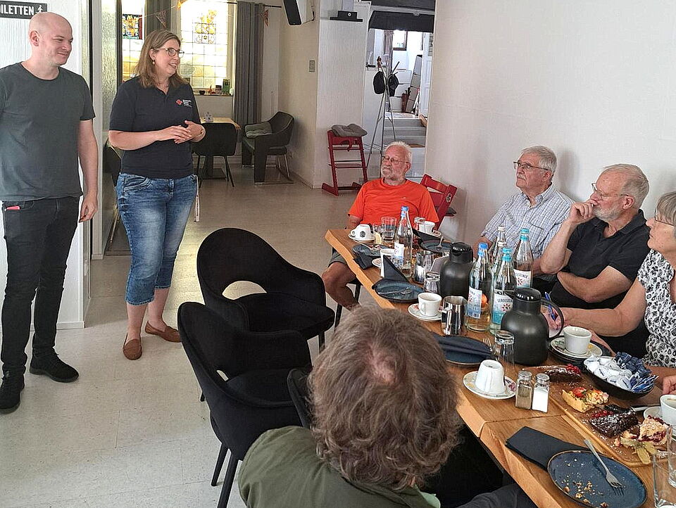 Unter dem Motto „Endlich mal wieder richtig Sommer?“ stellten Martin Schmitz, Klimaschutzmanager der Stadt, sowie die DRK-Flutlotsinnen Angelika Eimermacher und Karoline July das Konzept der Klima-Cafés vor. Im Mittelpunkt stand der Austausch über praktische Tipps zum Hitzeschutz. „Die rege Beteiligung und das große Interesse der Teilnehmenden führten zu einem intensiven und bereichernden Dialog“, so Angelika Eimermacher.