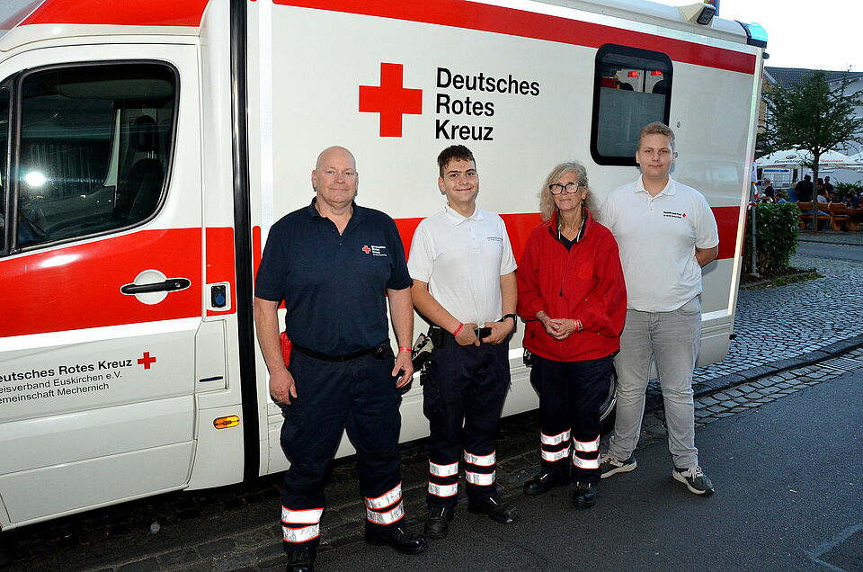 Die Technik hatte die Firma „X-Lighting“ im Griff. Um die Sicherheit der Besucher kümmerte sich der Mechernicher Ortsverein des Rotkreuz-Kreisverbandes Euskirchen unter Leitung von Sascha Suijkerland: „Dieses Mal haben wir das Jugendrotkreuz miteingebunden, so zum Beispiel im Kinderprogramm an unserer Hüpfburg.“ Auch einige Spendensammler waren wieder für Flutopfer unterwegs und zwar der Kommerner Kinderliedersänger Uwe Reetz, Nicole Reipen, „HP“ Fischer sowie „Donner“ Wilfried Oberauner.