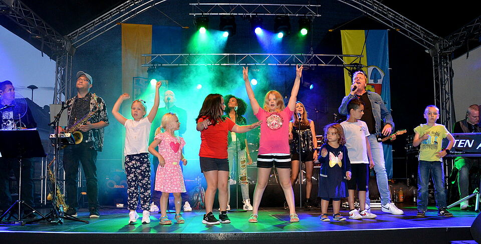 An tosendem Applaus war die Begeisterung des Publikums deutlich zu erkennen, der Platz irgendwann gerappelt voll und bester Stimmung. Bei der zwölfköpfigen Band sang zwischendurch auch Promigast Mirko Bäumer, Frontmann der kölschen Band „Bläck Fööss“, mit.
