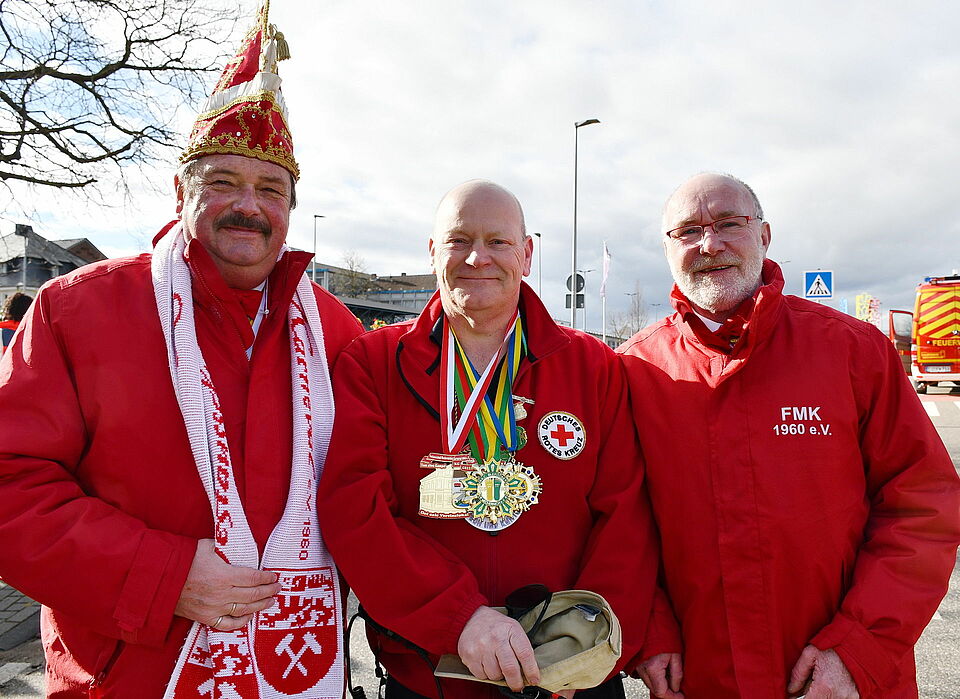 Dazu kamen eine ganze Reihe stattlicher Festkomitee- und Prunkwagen der Gesellschaften, denen das allen voranfahrende Kommerner Dreigestirn allerdings die Schau nahm. Schmerzlich wurde einem vor Augen geführt: Die Bleiberg-Metropole ist seit Jahren arm an Tollitäten. Jungfrau Thomas Bank, Bauer Marc Schoeller und Prinz Jan I. (Jaeck) von der anderen Seite des Altusknipp spiegelten aber auch das gute Verhältnis zwischen ihrer Karnevalsgesellschaft „Gressberger“ und den drei Mechernicher Karnevalsclubs Prinzengarde, „Bleifööss“ und Festausschuss Mechernicher Karneval wider.
