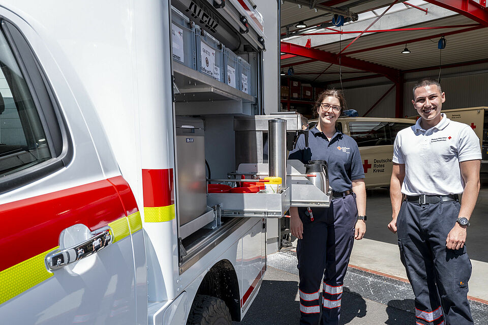 Um Verpflegung ging es auch beim Euskirchener Ortsverein. Sie hatten schließlich ihren Ranger mitgebracht. „Der ist einzigartig in Deutschland“, betonte Daniel Pöthmann. Denn die Euskirchener Rotkreuzler haben das Auto so ausgerüstet, dass sie damit sehr schnell ausrücken können, um Einsatzkräfte zügig mit Getränken und ersten Snacks zu versorgen.