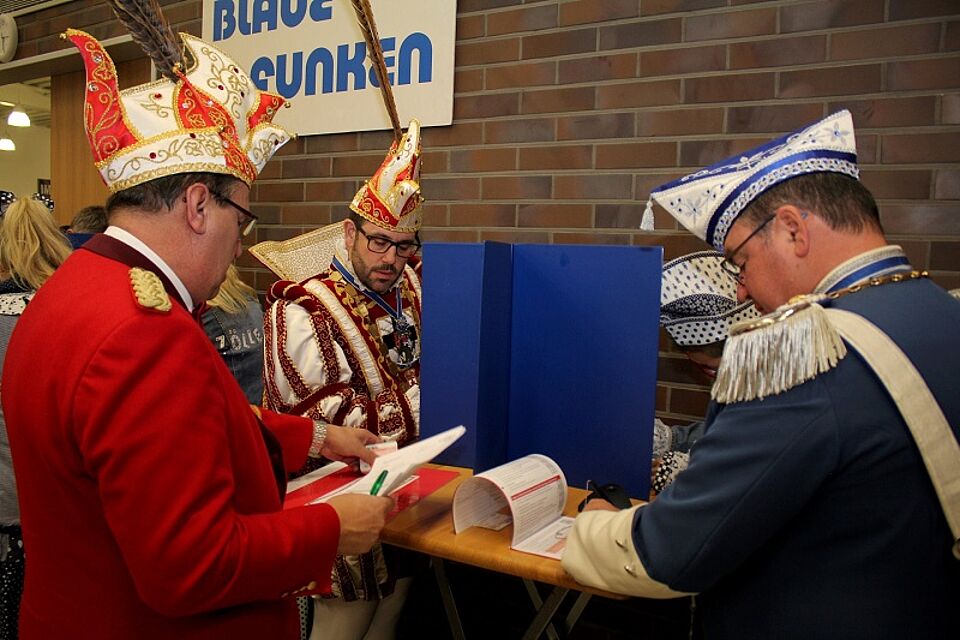 Gegen 18 Uhr schlug die Tollität mit Ehefrau und Entourage im Forum auf. Aber eine Sonderbehandlung bekommt der Karnevalsprinz nicht. Wie die übrigen Blutspender auch, muss er zunächst einen Fragebogen ausfüllen (Blaue-Funken-Präsident Ralf Esser: „Ich glaube, die ändern jedes Mal die Fragen, damit es nicht so langweilig ist“) und anschließend beim Arzt vorsprechen, der nach eventuellen Vorerkrankungen abfragt und am Ende entscheidet, ob jemand Blut spenden darf oder nicht.