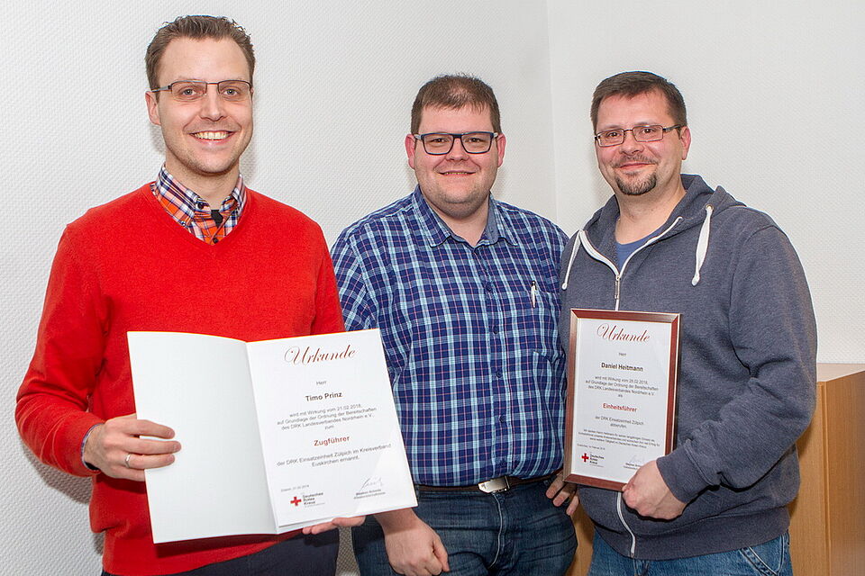 Heitmann verlässt das Rote Kreuz aber keineswegs. Er unterstützt den Ortsverein in der Fachgruppe Technik und Sicherheit weiterhin. „Außerdem wird er weiterhin Aufgaben im Führungsdienst des Kreisverbandes übernehmen“, erklärt Stephan Schmitz, Kreisbereitschaftsleiter des DRK im Kreis Euskirchen, beim Amtswechsel Heitmann und Prinz.