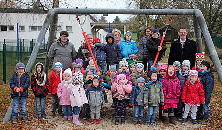 Von der Spende der VR-Bank Nordeifel hat sich die DRK-Kindertagesstätte Lommersdorf eine Nestschaukel gekauft