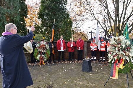 Unprätentiöse und ergreifende Feier zum Volkstrauertag in Mechernich mit starker Beteiligung des Roten Kreuzes – Eifeldekan Pühringer bittet jeden, seine Talente für die Gemeinschaft in Pfarre und Stadt einzusetzen – Neue Gedenktafeln aus rostigem Eisen an Stelle der gestohlenen wertvollen Bronzetafeln eingesegnet – Verkehrssicherung mit Quads