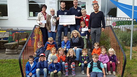 Der Junggesellenverein „Edelweiß“ spendete den Erlös der Schönauer Kirmes – „Fifty-fifty“ für insgesamt 1600 Euro an „oss Pänz“ im DRK-Kindergarten und für den Altentag
