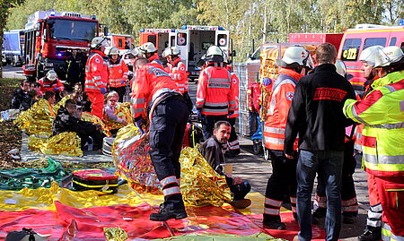 Riesige Katastrophenschutzübung im Bundeswehrdepot West am Standort Mechernich – Etwa 400 Teilnehmer – Bundeswehrfeuerwehr und zivile Kräfte sollten sich besser kennenlernen – Rotes Kreuz stellte zahlreiche „Verletzte“