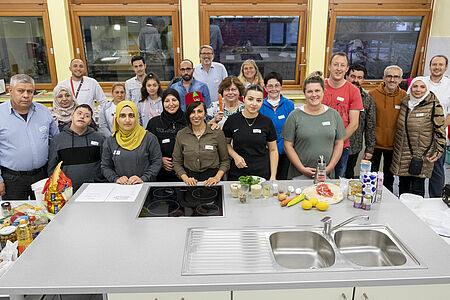 Teilnehmer aus acht Nationen kochten gemeinsam im Thomas-Eßer-Berufskolleg ein leckeres Drei-Gang-Menü – Baba Ghanoush, Bagla und Libanesische Nächte –