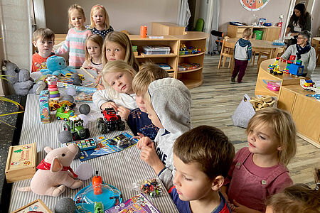 Herhahn / Mechernich | Kinder der DRK-Kita Herhahn nahmen sich das Bilderbuch „Juli tut Gutes“ zu Herzen und gaben ein Spielzeug her für den guten Zweck – Der Mechernicher Hilfsgruppen-Chef Willi Greuel freute sich über eine Spende in Höhe von 300 Euro