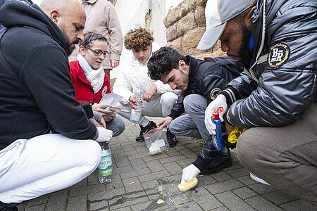 Euskirchen | Geflüchtete aus arabischen und afrikanischen Ländern und der Ukraine reinigten Euskirchener Stolpersteine – Eine gelungene Aktion des DRK, des Kreises Euskirchen und von Vogelsang IP – Im DRK-Mehrgenerationenhaus fanden zunächst Workshops über Antisemitismus sowie zur Geschichte der NS-Zeit und der Eifeler Ordensburg statt