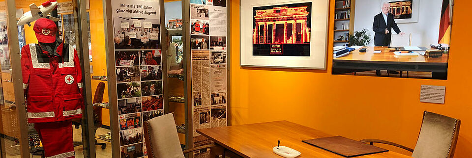From operations in the wars of the late 19th century, to the First World War, through the Nazi era and the Second World War into the turmoil of the post-war period. Operations during refugee movements after 1945 to the present day, the flood of 1962, many international relief operations — the exhibition guides guests with many examples and background stories and encourages them to get involved as volunteers. The series ends with the relocation of the headquarters from Bonn to Berlin.