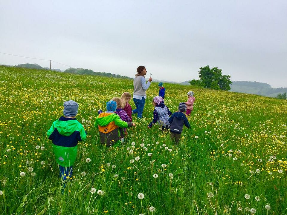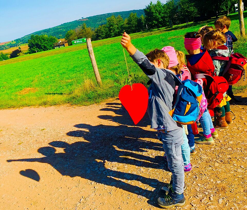 Naturnähe und Bewegung ist uns ein besonderes Anliegen. Die Einrichtung liegt idyllisch und naturnah zwischen Wald, Feld und Wiese am Ortsrand von Nöthen, dies ermöglicht es uns regelmäßig, Erkundungswanderungen in die Natur zu machen.