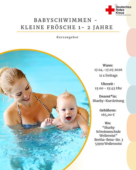Babyschwimmen der Rotkreuz-Familienbildung in Weilerswist – Kurs unter Leitung der „Sharky Schwimmschule“ ab sofort jeden Freitag von 15 bis 15.45 Uhr – Wasserspaß für Babys von ein bis zwei Jahren zusammen mit ihren Eltern