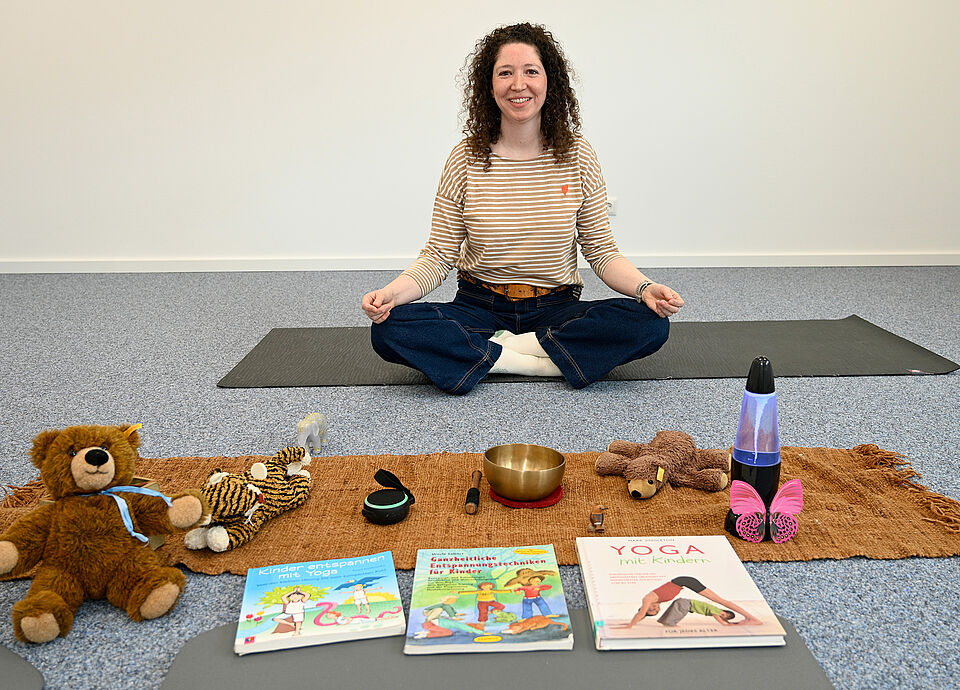 In den Stunden herrscht geradezu mystische Stimmung, es läuft mal belebende, mal entspannende Musik. „Das Göttliche in mir grüßt das Göttliche in Dir“ – die Bedeutung des Grußes „Namasté“ – ist hier Programm. In der Mitte des Raumes, umgeben von neun Yogamatten, befinden sich neben einer Klangschale auch Kuscheltiere und eine Lavalampe, um den Kindern einen breiten Raum für Achtsamkeit zu ermöglichen. „Meine Yogastunden sollen für Kinder ein Raum für Selbstvertrauen, Konzentration und Körpergefühl sein – jedoch ohne Wettbewerb oder Leistungsdruck“, erzählt Kursleiterin Ross: „Gerade der Schulalltag kann für Kinder sehr stressig sein. Die Stunden können helfen, dass die Kinder nach einem anstrengenden Tag wieder entspannt und ausgeglichen nach Hause gehen.“