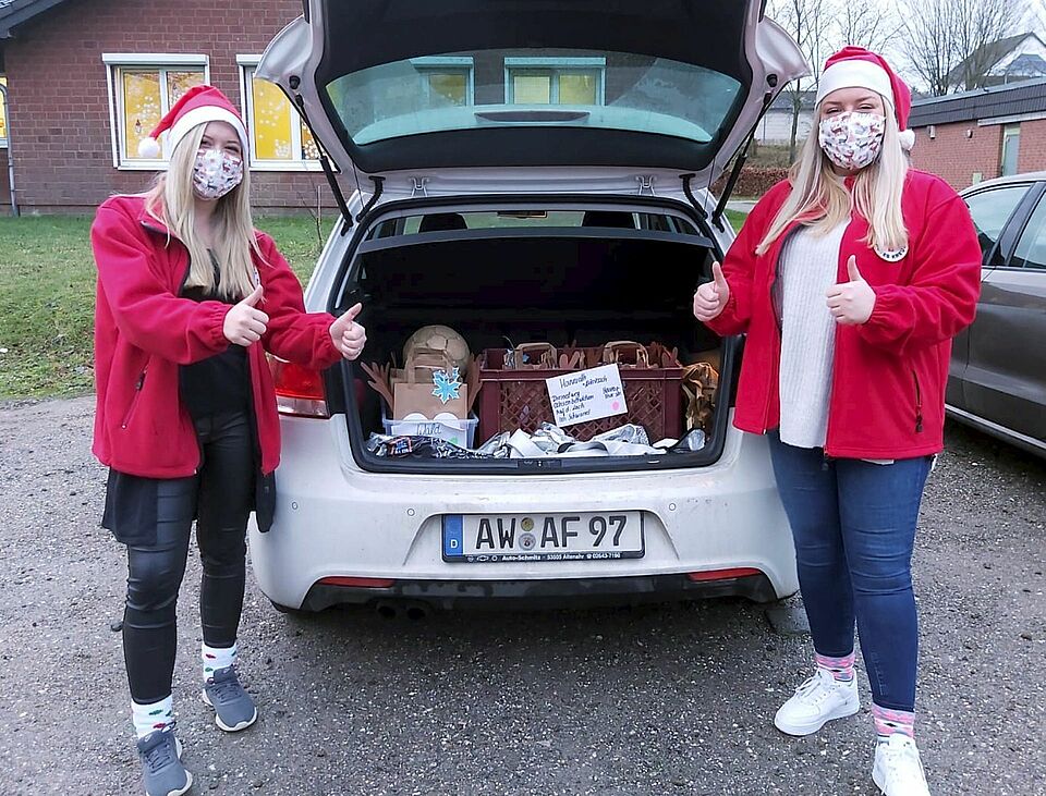 Deshalb erklärten sich die Fachkraft Annika Frings sowie Auszubildende Malin Reuter kurzerhand bereit, allen Kindern einen kleinen Besuch abzustatten. Am 22. Dezember, also zwei Tage vor Heiligabend, unternahmen sie eine Spritztour durch Houverath und in die umliegenden Orte, um die Kinder zu überraschen. An den Haustüren überreichten sie jeweils eine Weihnachtstüte, gefüllt mit weihnachtlichen Liedtexten, einem Weihnachtsgruß für die Eltern, einem weihnachtlichen Bastelangebot und natürlich ein paar süßen Leckereien.