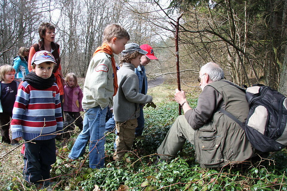 Bild DRK EU | Kinder aus dem Rotkreuz-Kindergarten Oberhausen mit dem"Waldschrat" im Nationalpark Eifel unterwegs.