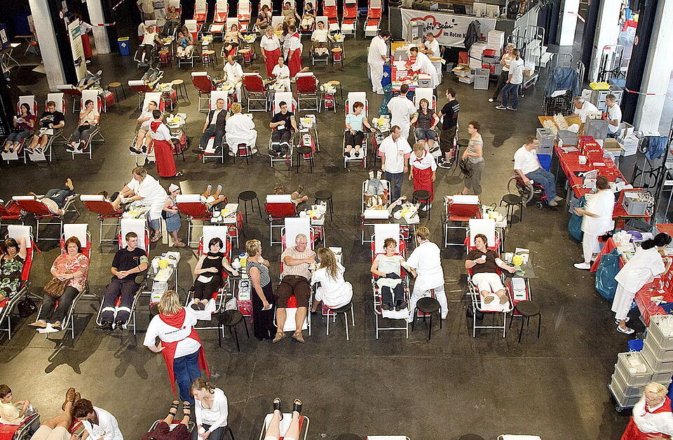 Bild DRK | Mechernich - „Blutspender sind anonyme Lebensretter und Helden des Alltags.“, sagte Erwin Doppelfeld, Rotkreuz-Kreisvorsitzender, anlässlich des sechsten Blutspendenmarathon in der TON-Fabrik. Auch dieses Mal gab es Specials für die Spender (z.B. wurde der teilnehmerstärkste Fußballclub mit einem neuen Satz Trikots ausgestattet), sodass kein Spender leer ausging.