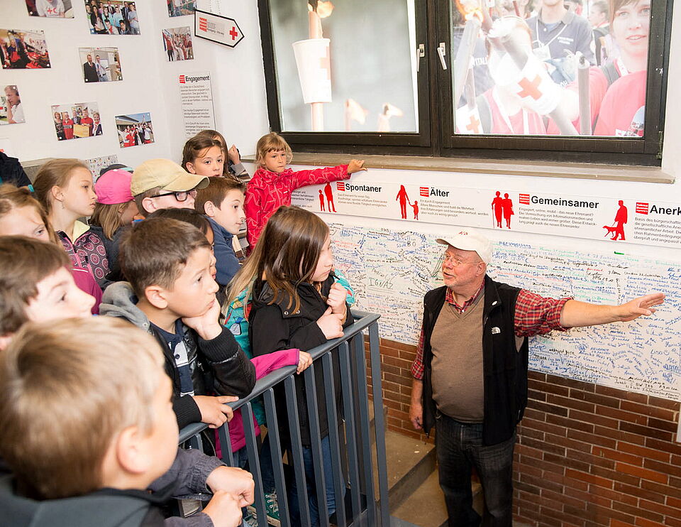 Bild DRK EU DD | vogelsang ip - „Jeder kann helfen“ war die Hauptbotschaft, die den Kindern aus der Offenen Ganztagsschule Blankenheim bei ihrem Besuch im Rotkreuz-Museum übermittelt werden sollte.