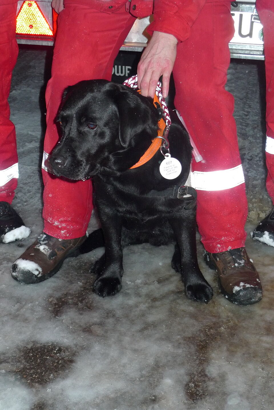 Bild DRK EU | Emmily rettet Leben. Die Labradorhündin Emmily hat gemeinsam mit ihrer Rettungshundeführerin Monika Hanfland einen 68jährigen Mann vor dem Erfrieren gerettet. Im dunklen und tiefverschneiten Winterwald hatte er sich verirrt und war entkräftet liegengeblieben. Emmily kam gerade noch rechtzeitig.