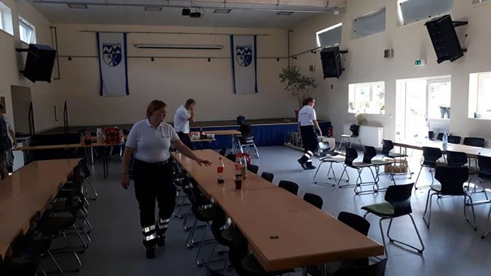 Ein Reifenplatzer zwang am heutigen Mittwochmittag einen Reisebus, vollbesetzt mit Jugendlichen, zu einem Stopp auf einer Straße bei Blankenheim. Völlig überhitzt, wegen eines Ausfalls der Klimaanlage, wurden rund 90 Reisende zum Bürgerhaus nach Blankenheimerdorf verlegt. Die Betreuungseinheit des Roten Kreuzes aus Kall war schnell zur Stelle und reichte den havarierten Gästen kühle Getränke und Snacks. Die Kollegen aus Blankenheim haben ebenfalls mitgeholfen. Die Jugendlichen hatten bereits einige Zeit in der prallen Sonne verbracht und waren teils nicht mehr bei Kräften.