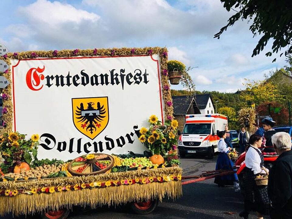 In Dollendorf beim Erntedankfest durften unsere Helfer vom Ortsverein Blankenheim heute bei super Wetter mit vielen Sonnenstrahlen die Traktoren und Pferde mit Gespann beobachten. Der Ortsverein war mit RTW, MTF und einem Fußtrupp im Zug vertreten.