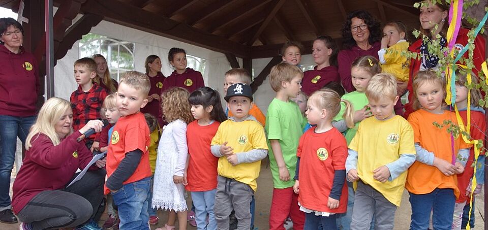 Am ausgezeichneten Ruf hätten auch viele Ehrenamtliche, die Eltern, Ortsvereine, der Vorlese-Opa und viele Ehemalige ihren Anteil, sagte Birgit Bresgen im Kreis ihrer Kollegen und vieler „Pänz“, die den offiziellen Teil des Programms am Sonntagnachmittag mit der Bekanntgabe sämtlicher Attraktionen des Kindergartenfestes eröffneten. Außerdem habe sie ein Team um sich aus lauter stark engagierten Persönlichkeiten, die vor Ideen sprühten und Zusatzausbildungen und Qualifikationen immer wieder auf sich nähmen.