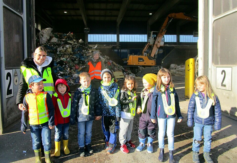 Karen Beuke, Abfallberaterin des Kreises Euskirchen, unterstützt die Arbeit im Kindergarten und gestaltete jetzt wieder einen interessanten und lehrreichen Besuch für die Kinder im Abfallwirtschaftszentrum (AWZ) des Kreises in Strempt.