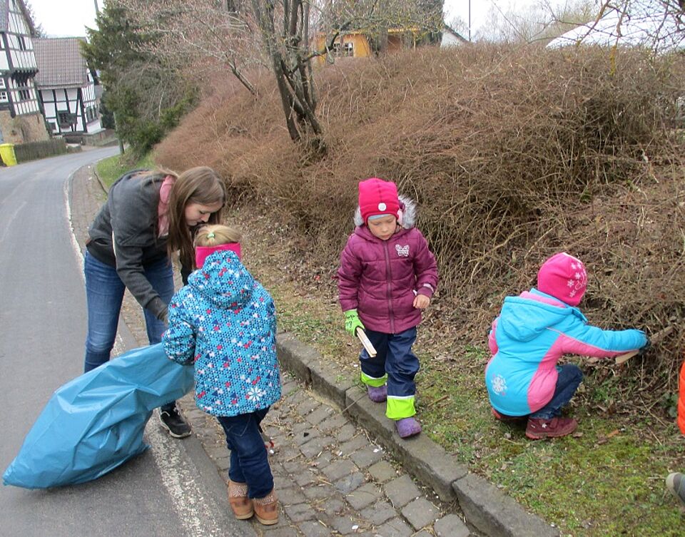 Bereits im Vorfeld wurde das Gelände auf dem Kindergartenhof und Umgebung von den Kindern gesäubert, abgebrochenes Astwerk zusammengetragen, der Hof gekehrt. Auf dem Marktplatz wurden Glas, Grillschalen, Zigarettenkippen und sogar ein Rock in den Säcken gesammelt.