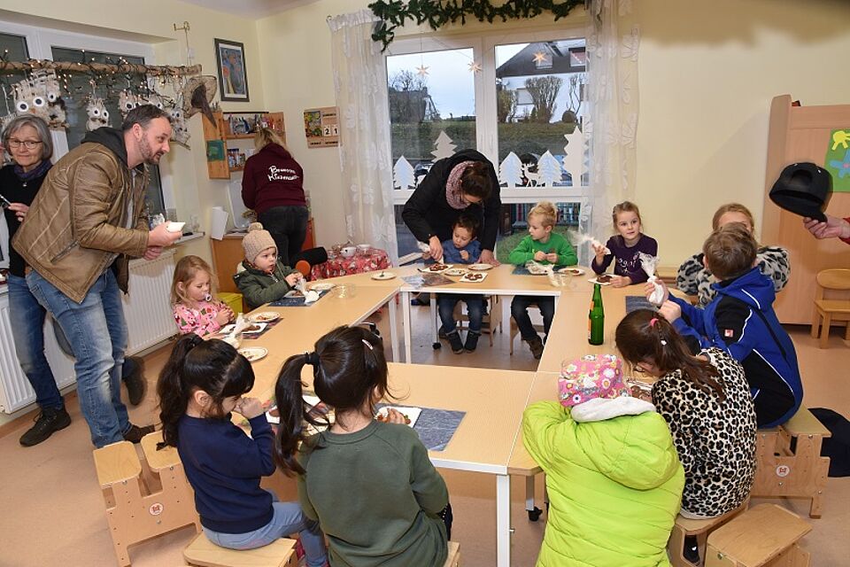 Blankenheim-Dollendorf – Weihnachtsmarkt im Kindergarten Dollendorf ist im wahrsten Sinne des Wortes ein Fest fürs ganze Dorf. Denn nicht nur die ureigene Kindergartenbesatzung mit 43 „Pänz“ und acht Pädagoginnen sind während der Vorbereitung und Durchführung aktiv, sondern vor allem Eltern, Großeltern, Patentanten und Ehemalige in erheblicher Anzahl.