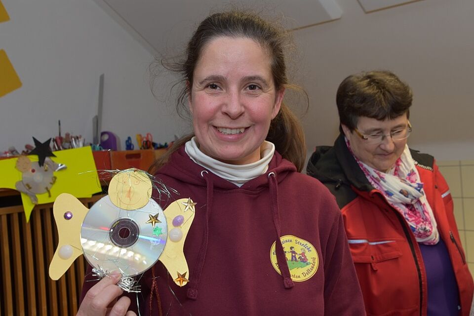 Die DRK-Kindergärtnerinnen bereiten auch eine Menge Sachen mit den Kindern selbst vor, Weihnachtsbaum schmücken, Krippe bauen, Plätzchen für den Verkauf backen, Deko-Gegenstände wie CD-Engel und Tapeten-Christbäumchen basteln und so weiter. Auch für Kaffee, Kuchen, Glühwein, Reibekuchen, Fritten und Würstchen war reichlich gesorgt.
