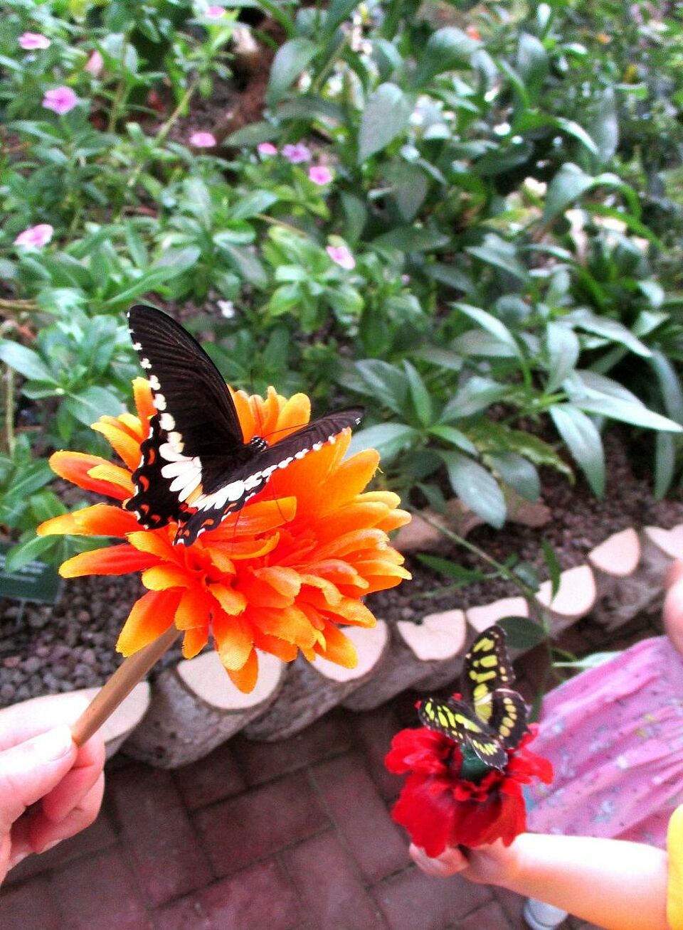 In Ahrhütte angekommen gab´s auch gleich eine Führung durch den „Schmetterlingsgarten“. An die Kinder wurden mit Nektar besprühte Kunstblumen verteilt, welche die Insekten zum Verweilen einladen. Die Artenvielfalt der seltenen und bunten Schmetterlinge entzückte sowohl Kinder, als auch Erwachsene. Auf manchen Blüten landeten sogar bis zu sechs Schmetterlinge gleichzeitig.