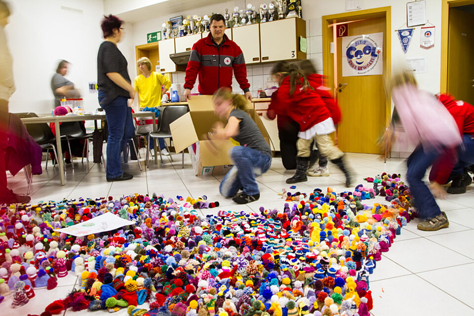 Nachdem die Gruppe des Jugendrotkreuz Dahlem letztes Jahr bereits 681 Mützchen erstrickt hatte, so hatte man sich in diesem Jahr zum Ziel gesetzt, die 1.000 Mützchen zu erreichen.
