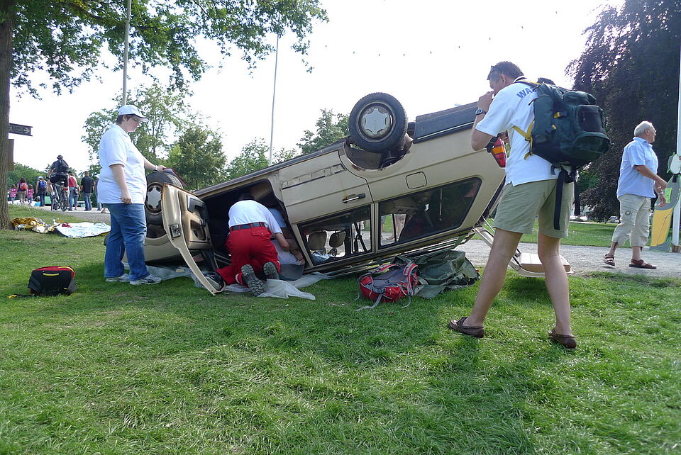 Die Teilnehmer wurden an den 11 Wettbewerbsstationen mit sehr realistisch dargestellten Unfallszenarien konfrontiert. So wurde u.a. ein Unfall zwischen Auto und Fahrradfahrerin, ein Grillunfall, ein Starkstromunfall und ein Bootsunglück inszeniert.