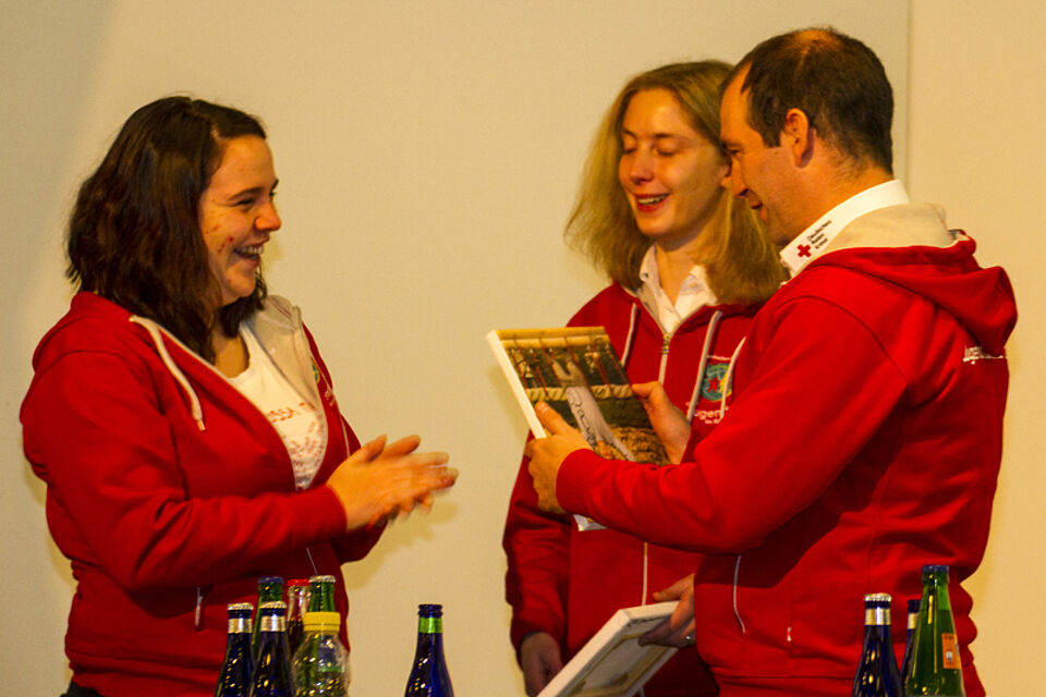 Bild DRK JS | Trotz der Anspannung vor der Wahl freuten sich die drei über die persönlichen Aufmerksamkeiten.