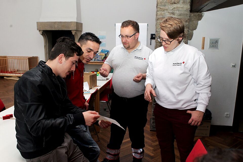 Dahlem-Kronenburg - Der Einsatz des Roten Kreuzes im Kreis Euskirchen in der Notunterkunft für Flüchtlinge in Kronenburg geht weiter. „Die graue Masse von Flüchtlingen wird hier zum Individuum“, sagt die ehrenamtliche Helferin Susanne Fiege. Zusammen mit ihrem Mann Marcel sowie Rebecca Stephani, Angelika Wagner, Mariano Romero und Edeltraud Engelen kümmert sie sich an diesem Tag um das Wohl der Flüchtlinge. Seit Beginn des Betriebs der Kronenburger Notunterkunft läuft der Dauereinsatz des Roten Kreuzes. In einem Seminarraum wurde die Einsatzleitung eingerichtet, ein weiterer Raum als Kleiderkammer umfunktioniert.