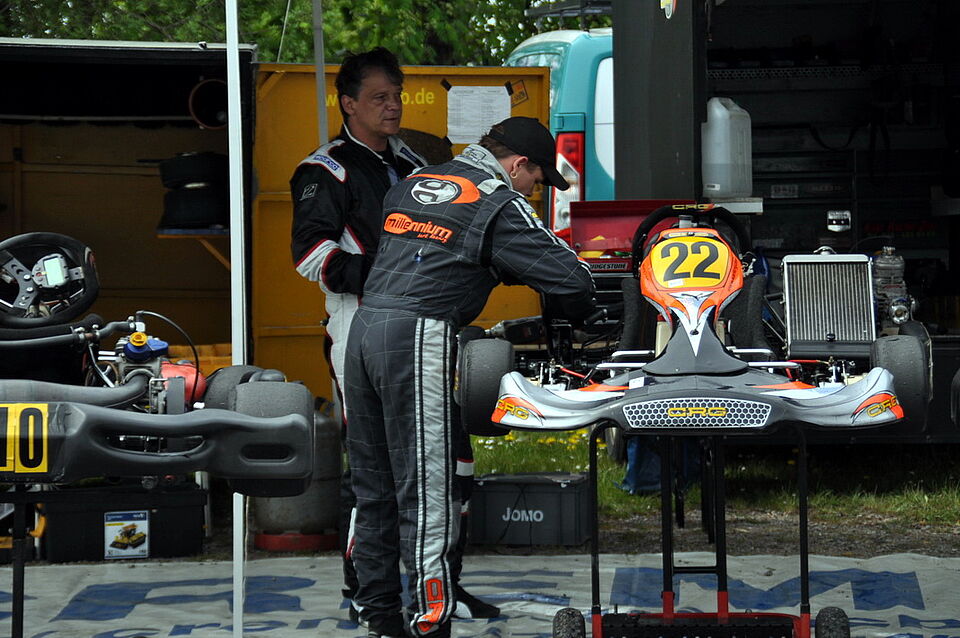 Im Fahrerlager wurden die Carts laufend geprüft und für die Rennstrecke optimiert. Mechaniker und Fahrer versuchten, das Beste aus ihren Fahrzeugen herauszuholen.