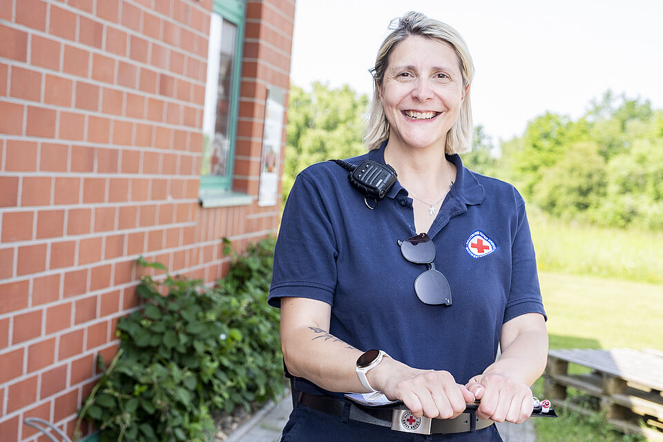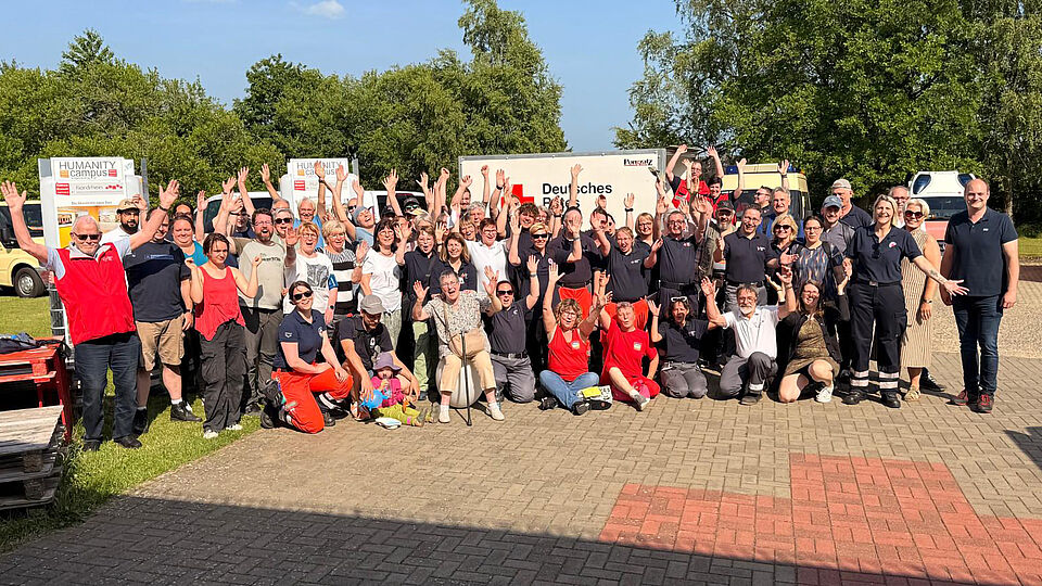 Im Rahmen eines Summercamps in Vogelsang hatten sich die 12 Mitglieder der Schwesternschaften zuvor intensiv auf die Abschlussübung vorbereitet. Sie alle hatten bereits eine Basisschulung mit reichlich Theorie absolviert und konnten nun das Gelernte in der Praxis umsetzen. Dazu gehörte es, zwei Häuser, das Fluchthaus und das Gebäude Transit 59, zu evakuieren und die Bewohnerinnen und Bewohner sicher in die Rotkreuz-Akademie zu bringen, wo ein Konferenzraum zum Bettenlager umfunktioniert wurde. Zur Übung gehörte es dann auch, mobile Pflegebetten der Firma Disc-O-Bett fachgerecht aufzubauen.