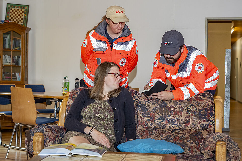 Ein Tag, bei dem am Ende alle Betroffenen wohlbehalten in der Rotkreuz-Akadamie angekommen sind. Die Bewohnerin, die im Flur plötzlich zusammengebrochen war, hatte sich nach der Behandlung schnell wieder erholt. Der orientierungslos umherwandernde Demenz-Patient hat es ebenfalls wohlbehalten in die „Notunterkunft“ geschafft, wo er seiner Krankheit entsprechend bestens betreut wurde. Der junge Mann konnte dort mit seiner kleinen Tochter und der Oma auch wieder zur Ruhe kommen. Und selbst Gertrud, Irmgard, Elfried und Hannelore legten ihr Memory-Spiel schließlich zur Seite und fühlten sich bestens aufgehoben in der Notunterkunft.