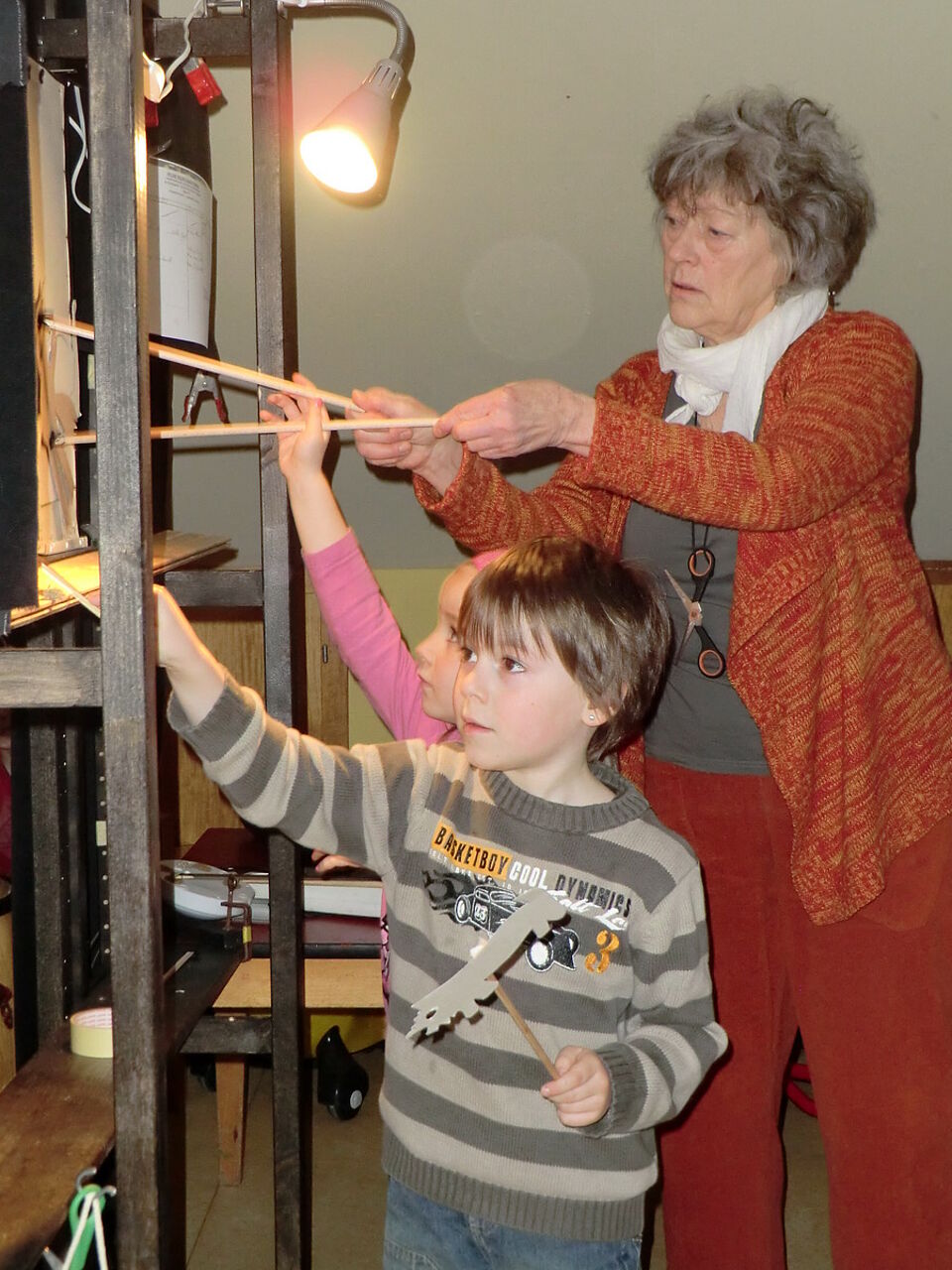 Dollendorf - Am 22.3.2013 luden die Kinder des DRK Bewegungskindergarten „Die kleinen Strolche“ aus Dollendorf alle Großeltern zum Frühstück ein. Die Großeltern nahmen zahlreich diese Einladung an und staunten nicht schlecht über das anspruchsvolle Schattentheater der Kinder. Diplom Designerin und Puppenspielerin (1 Jahr als Puppenspielerin bei der Augsburger Puppenkiste) Frau Ursula Andermahr aus Dollendorf, die auch Großmutter ist, leitete dieses Projekt.