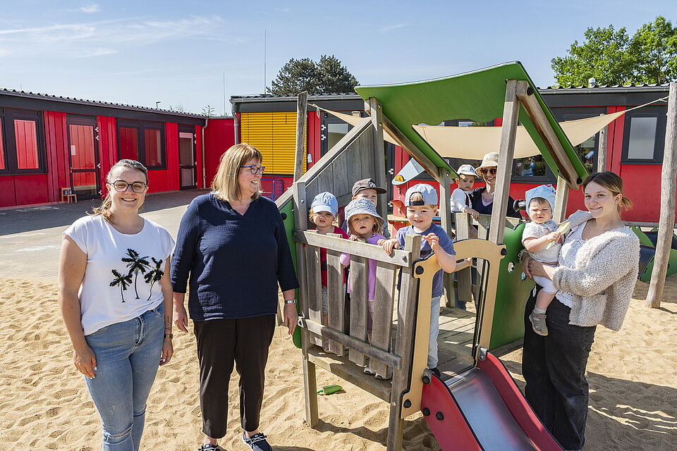 Die ersten Kinder sind 2015 in der Kita betreut worden, die in Modulbauweise am Ortsrand von Weilerswist entstanden sind. „Wir sind mit fünf Gruppen im U3-Bereich gestartet“, berichtet Gabriele Schulz, die von Anfang an dabei war. Bereits zwei Jahre später kam ein Anbau hinzu und die Kita wuchs auf neun Gruppen an. Keine leichte Aufgabe für das Team, oder? Gabriele Schulz lächelt bei dieser Frage. „Wichtig war und ist das Team“, so die Kita-Leiterin. Denn nur im Team könnten die alltäglichen Herausforderungen gemeistert werden. Daher werde auch viel Wert darauf gelegt, dass der Zusammenhalt unter den aktuell 31 Mitarbeiterinnen und Mitarbeitern gefördert werde.