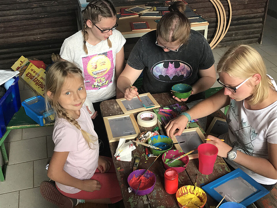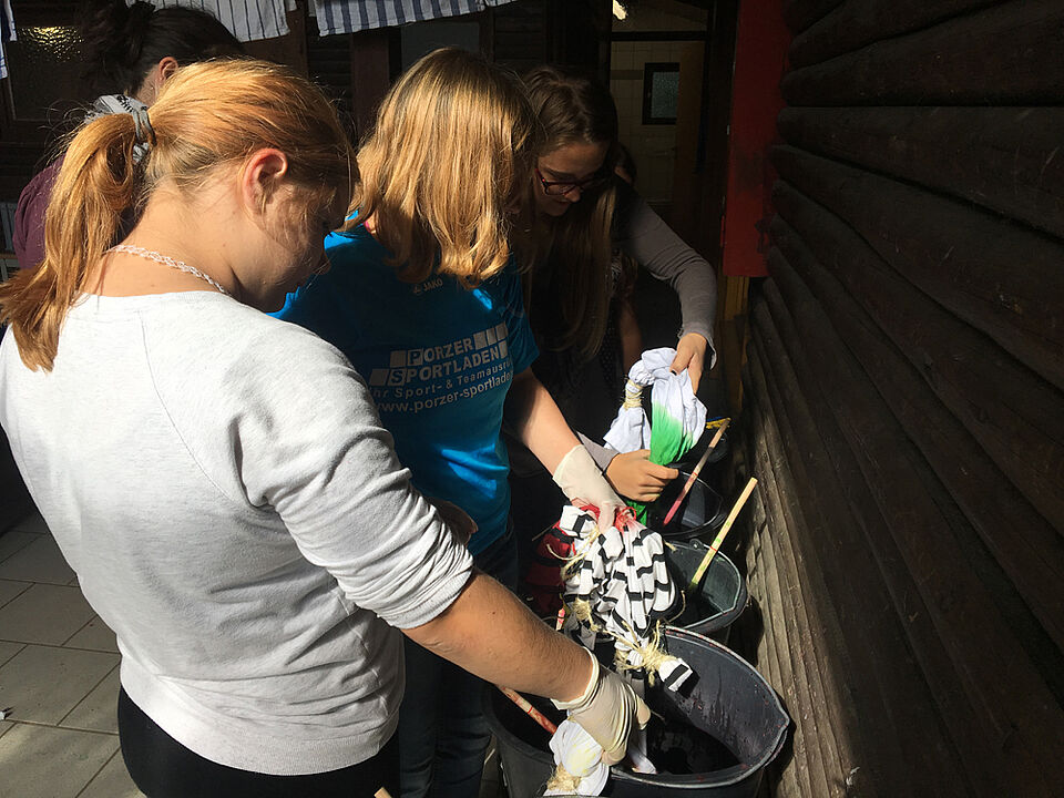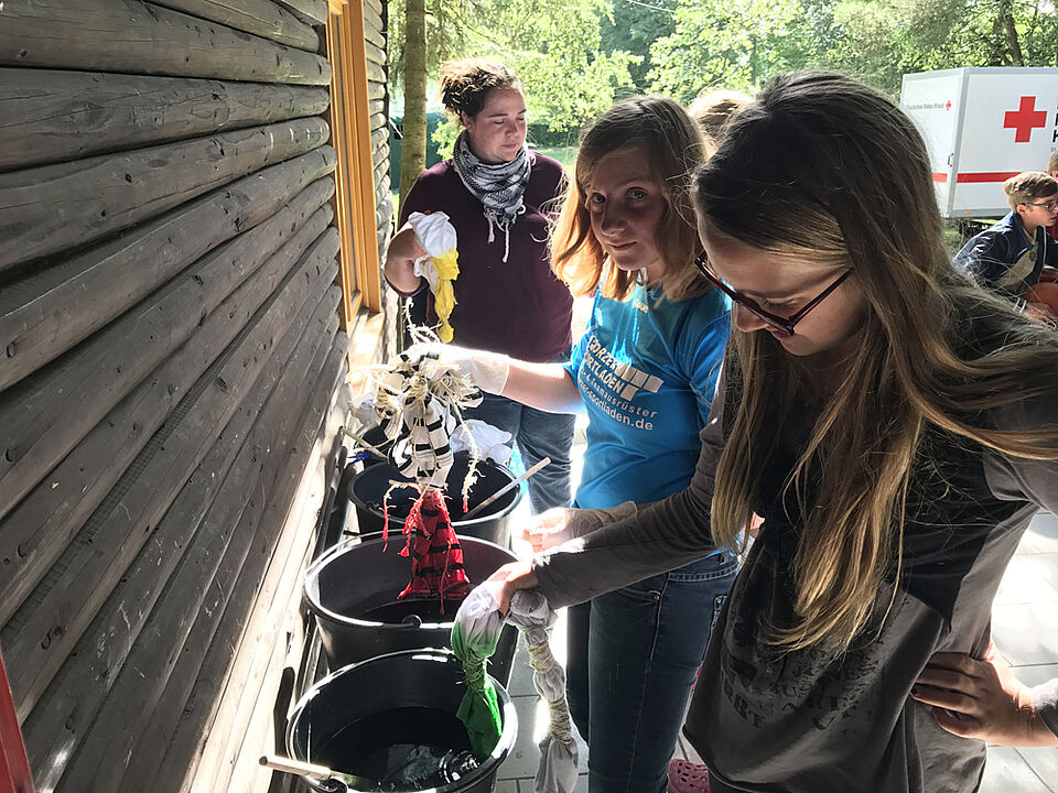 Am Freitag haben wir es uns in unserem Camp gemütlich gemacht und den Urlaub genossen. Als kurzes Programm haben wir unsere Bilderrahmen für das Gruppenbild gebastelt. Parallel haben wir T-Shirts und ganz viel andere Kleidungsstücke gebatikt - dabei sind echt richtig gute Ergebnisse zustande gekommen.
