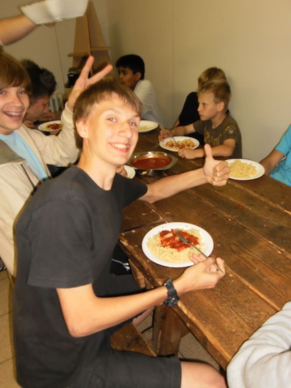 Nach einer kurzen Anreise in das Naturerlebniscamp Ernzen wurden schnell die Hütten bezogen und das Gelände erkundet. Die Betreuer verstauten die Einkäufe und bereiteten das Abendessen vor.