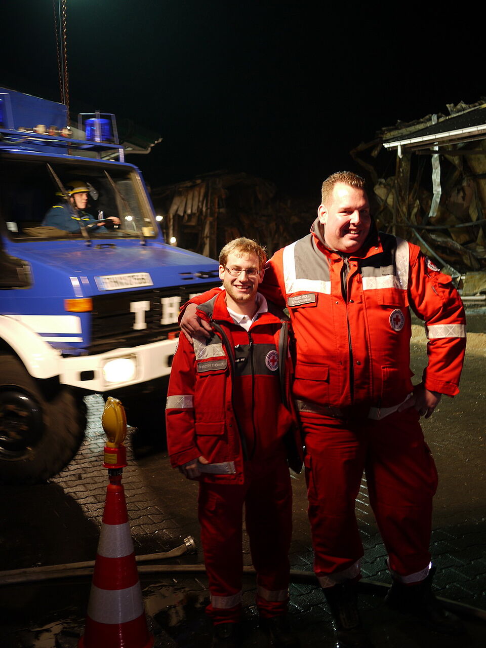 Seit fast 24 Stunden sind die Euskirchener Feuerwehrleute jetzt schon in Dom Esch im Löscheinsatz. Da sind Kameradschaft und Teamarbeit besonders wichtig. Wenn einer müde wird, trotzdem durchhalten, aber auch früh genug ablösen, gute und schmackhafte Verpflegung bereitstellen, für Licht sorgen, wenn es dunkel wird, helfen wo eine Hand gebraucht wird! Wenn alle anpacken geht das alles einfach besser. Rotkreuz-Kreisgeschäftsführer Rolf Zimmermann: "Danke für die tolle Zusammenarbeit! Ihr seid alle Spitze!!!"