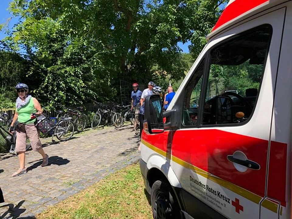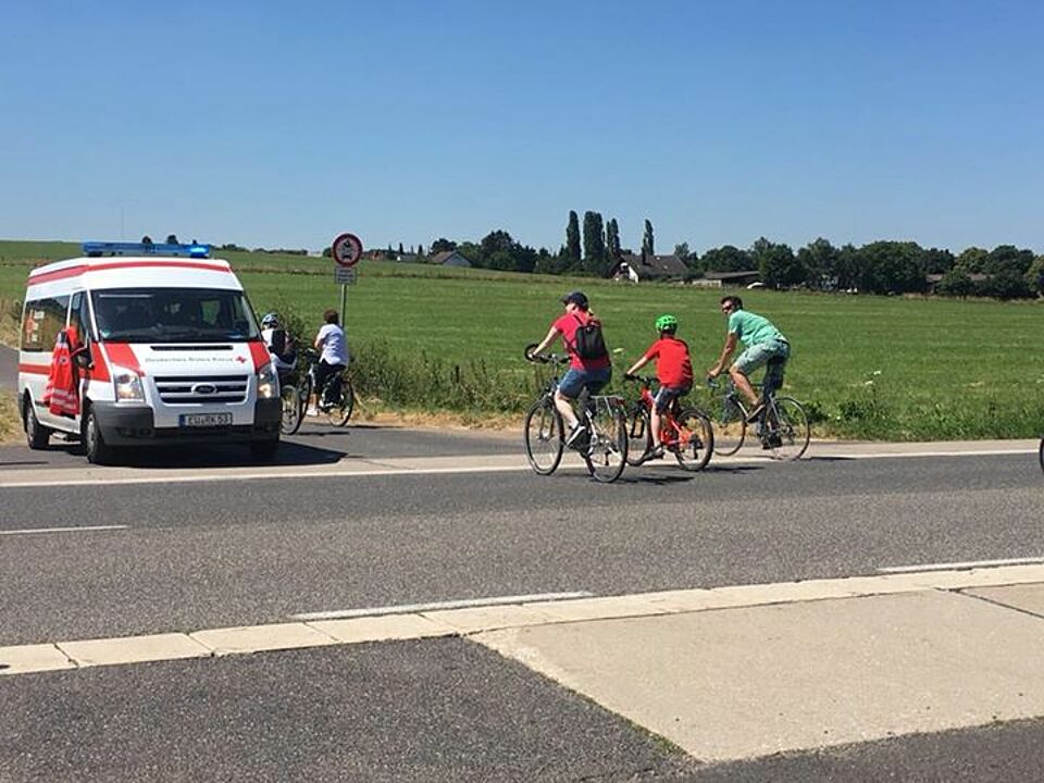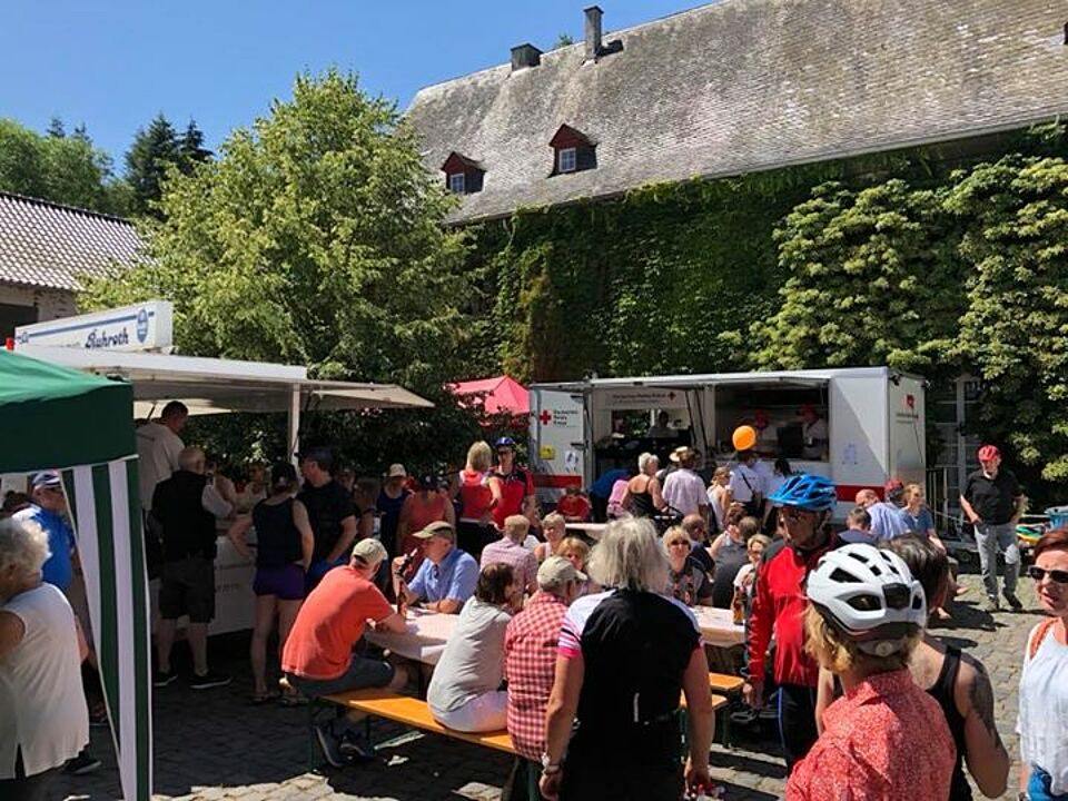 Auch in diesem Jahr beteiligt sich das Rote Kreuz aus der Kreisstadt Euskirchen an der Burgenfahrt. Tausende Radfahrer fahren den ca. 30km langen Weg rund um Euskirchen und besuchen diverse Burgen auf einer festgelegten Route. Seit Jahren ist das Rote Kreuz für den Sanitätsdienst und die Streckenabsicherung zuständig. Zusätzlich haben wir in diesem Jahr, mit Unterstützung des Ortsverein Mechernich, den Verpflegungspunkt am Kloster in Schweinheim übernommen. Die zahlreichen Besucher haben wir aus unserem neuen Küchenanhänger verpflegt und unsere Hüpfburg, für die kleinen Besucher, durfte natürlich auch nicht fehlen.