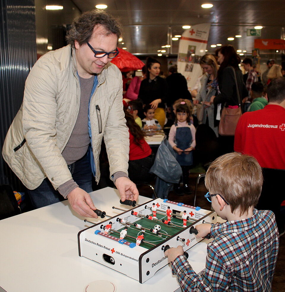 Ebenfalls beteiligt am 6. Euskirchener Friedenstag war das Jugendrotkreuz. Rund 20 Kinder und Jugendliche hatten allerhand Spielzeug für die lieben Kleinen mitgebracht. Ob Kinderschminken, der „heiße Draht“, ein Schnüffel-Rate-Spiel, ein Tischkicker oder Gesellschaftsspiele: Für jeden jungen Besucher des Friedenstages war mit Sicherheit etwas dabei.