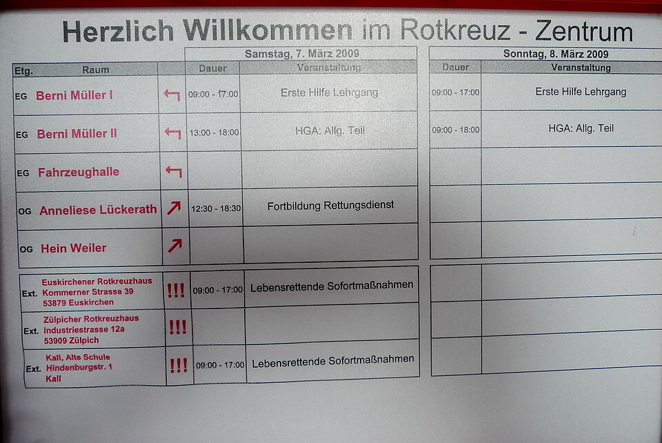 Bild DRK ZR | An diesem Samstag war das nur eine von insgesamt fünf Veranstaltungen des Roten Kreuzes im Kreis Euskirchen, in denen Leben retten und richtig helfen auf dem Lehrplan stand. Leben retten will gelernt sein - jeden Tag und jede Stunde geschehen Unfälle, können Sie noch richtig helfen? Erste Hilfe rettet Leben - frischen Sie Ihre Kenntnisse regelmäßig auf!