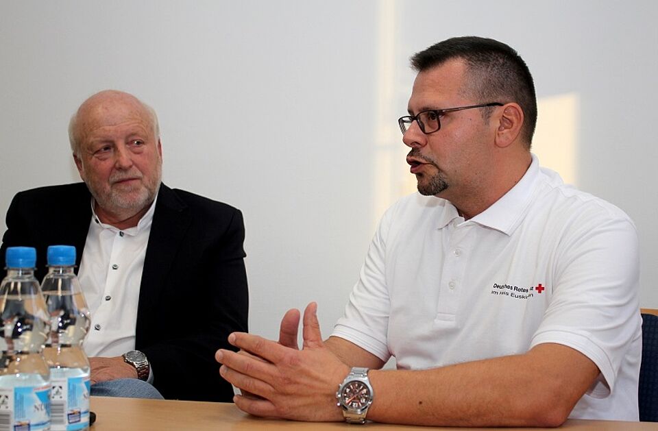 Dennoch dürfen die Helfer ja nicht ihre Arbeit einstellen. „Das Blaulicht muss sich drehen“, nennt Crespin das. Doch was können Helfer tun, will Ramers wissen. Daniel Heitmann spricht von Fortbildungen und Deeskalationstrainings, die alle zwei Jahre stattfinden. Boris Brandhoff, Leiter der Integrationsagentur des Deutschen Roten Kreuzes im Kreis Euskirchen, stellt das Projekt „Keep Cool“ vor. Dort lernen DRK-Angehörige, wie sie mit konfliktbeladenen Situationen umgehen, es geht um Kommunikation und Deeskalation. „Die Zündschnur heute ist bei vielen kürzer, viele Menschen sind überfordert und gestresst“, ergänzt Michael Mertens. Würden Menschen lernen, wie sie Konflikte nicht körperlich, sondern mit dem Mund lösten, sei das gut.