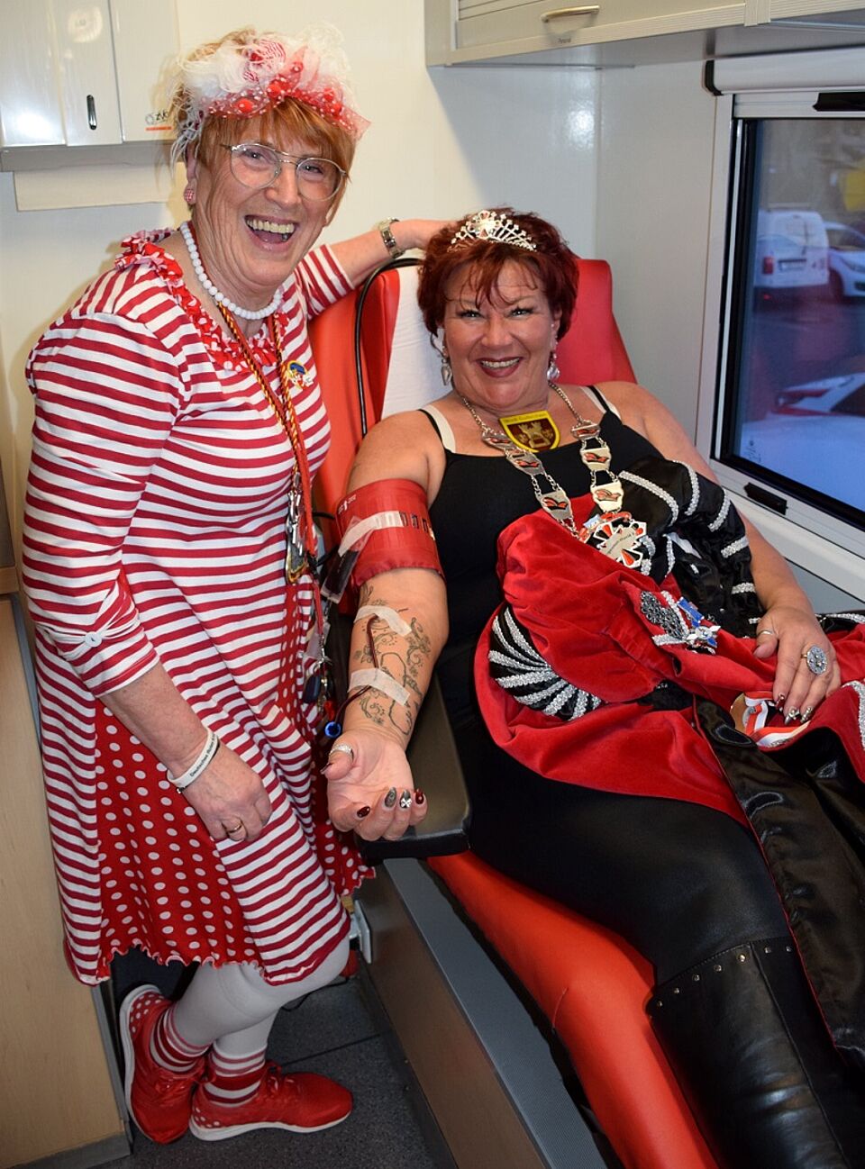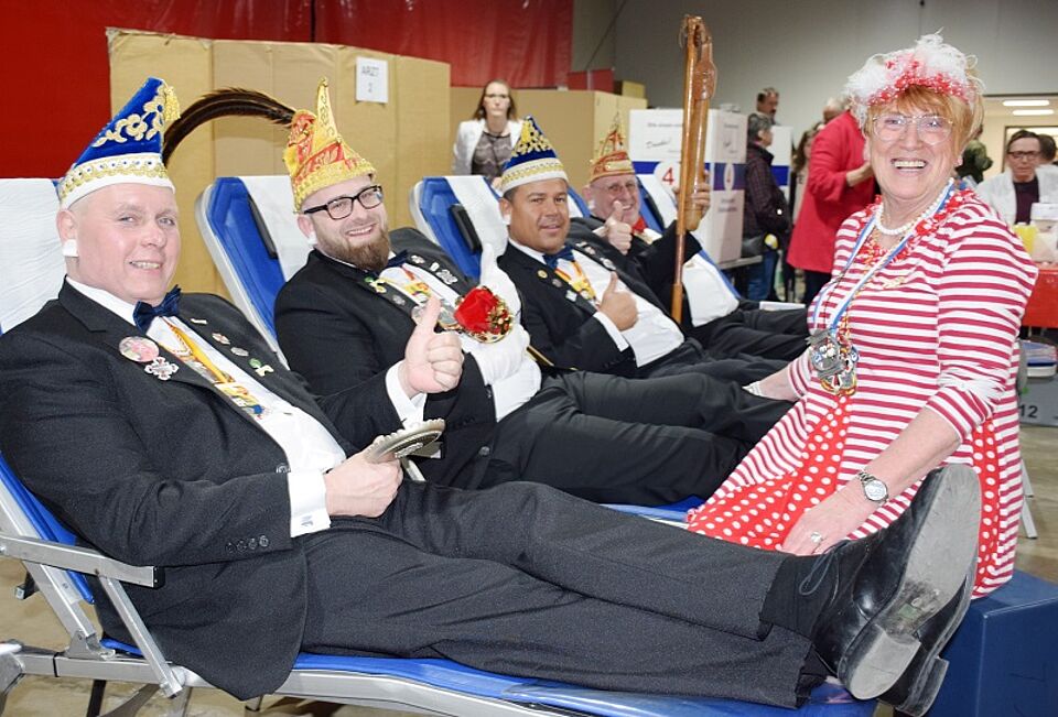 Dort zählt Edeltraud Engelen, die Blutspendenbeauftragte des Euskirchener Roten Kreuzes, insgesamt 373 Blutspender, darunter wieder einige Tollitäten und deren Gefolgsleute.