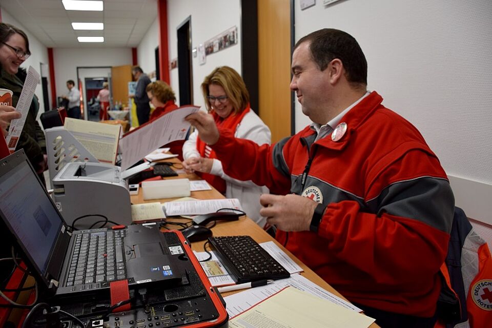 Mit 373 Blutspendern in Euskirchen wurde fast schon gekratzt am bisherigen Rekord, der bei 404 registrierten Blutspendern im Euskirchener Rotkreuzzentrum liegt. Engelen freut sich von Herzen angesichts des großen Ansturms. Sie sagt: „Aber wir möchten uns auch entschuldigen, dass heute manche doch länger warten mussten.“